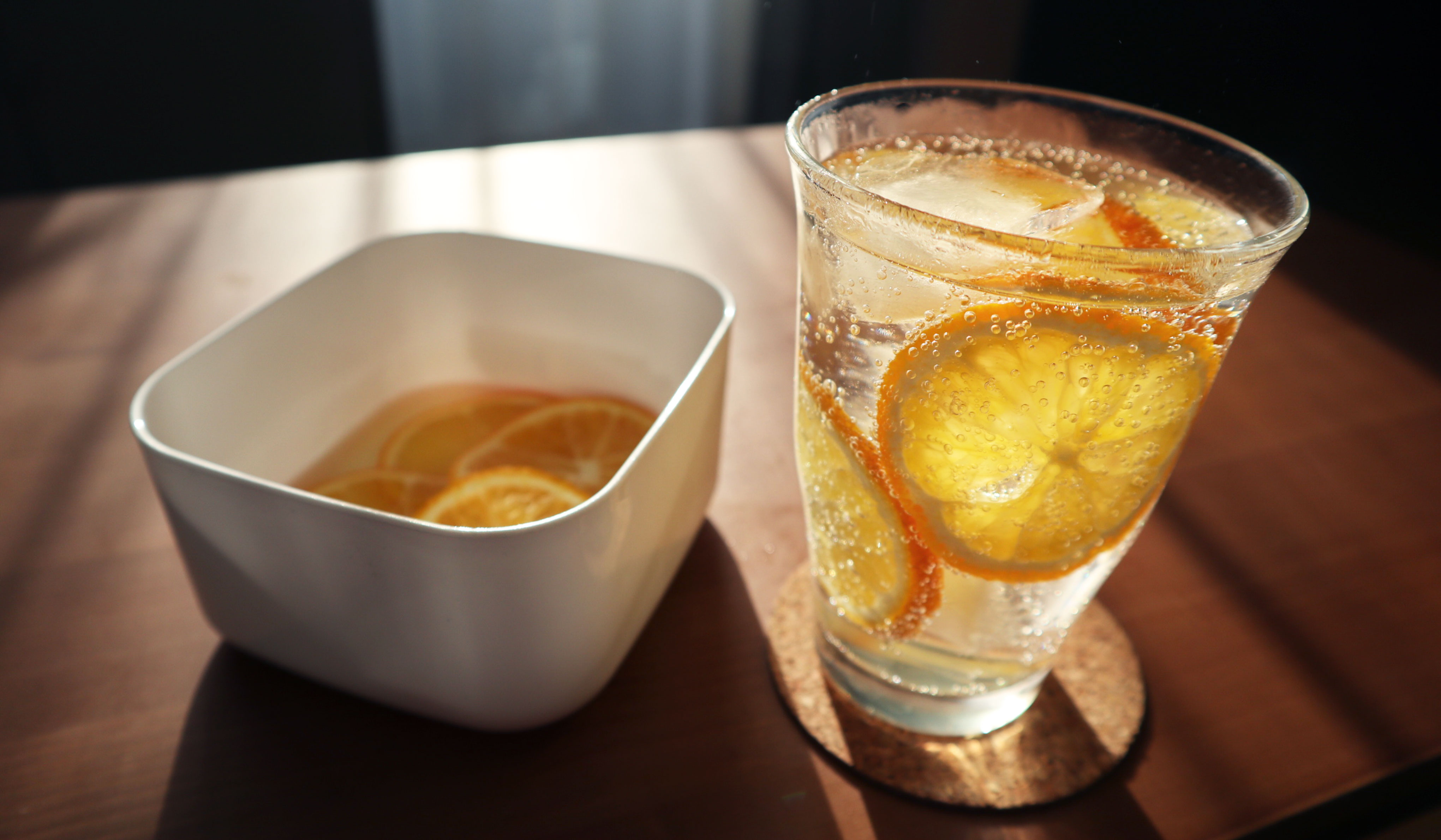 花粉シーズンに注目される柑橘「じゃばら」を使ったシンプルなドリンク。輪切りにしたじゃばらを砂糖に漬けるだけで、香り豊かなシロップが完成します。