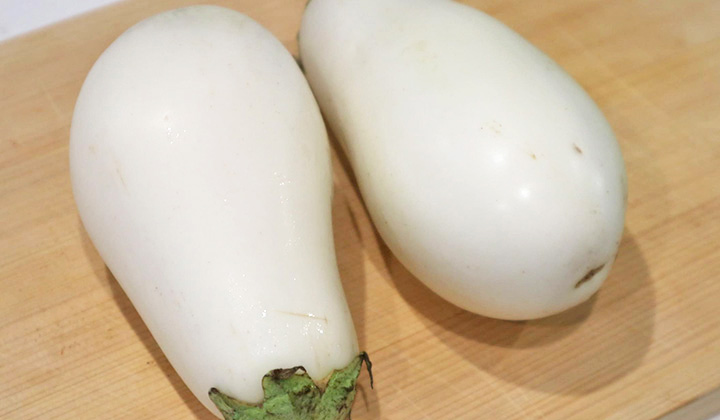 普段スーパーで見かける紫のなすとは違い、白い皮が特徴である白なす。